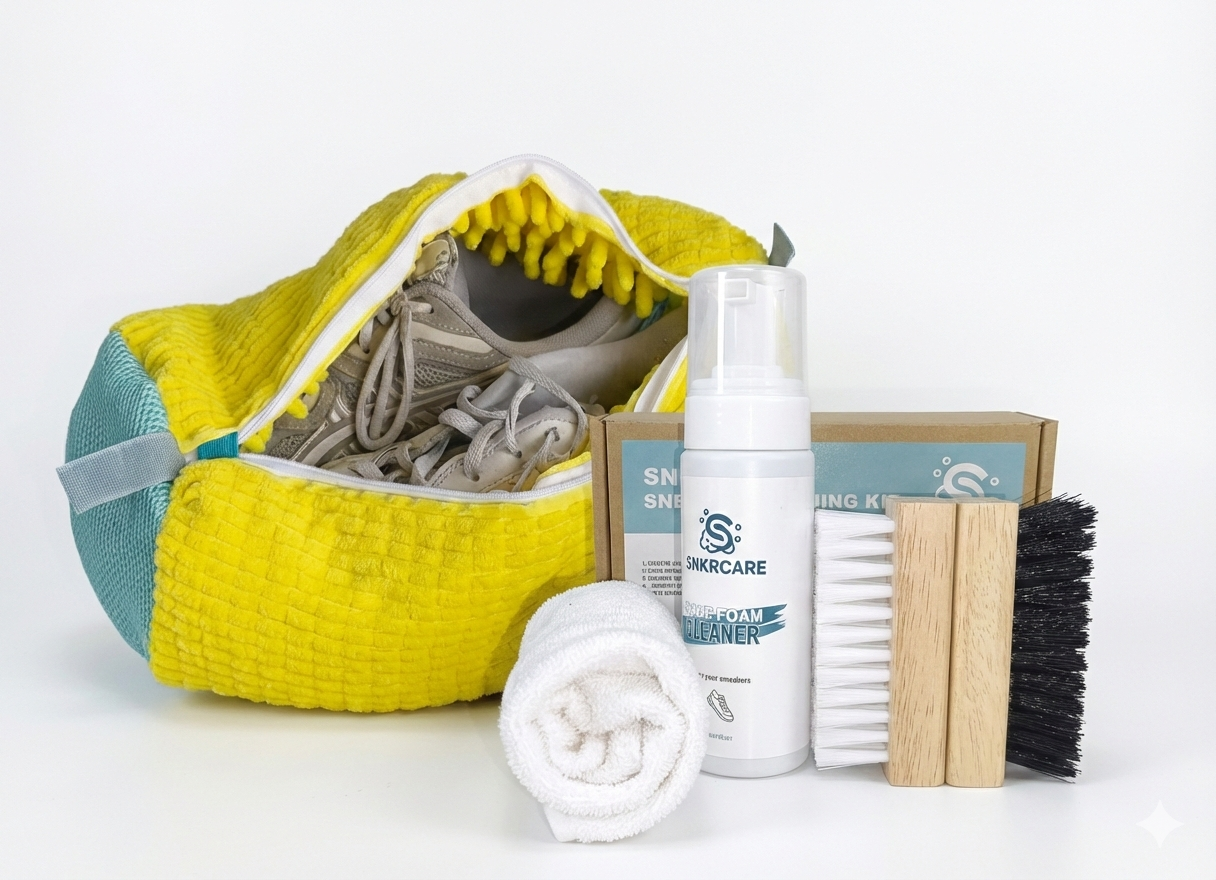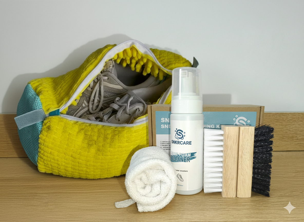Met de SNKRCARE Essential Cleaning Kit heb je alles in huis om je favoriete sneakers weer die frisse look te geven. Of het nu gaat om je dagelijkse leren stappers of je stoffen hardloopschoenen; deze set biedt de juiste tools voor een effectieve schoonmaakbeurt.